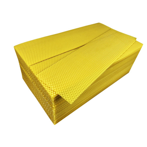 Цена за 1 кг. Вощина ПОЛУРАМКА, 1 кг. Размер 410 х 120 мм Сделано в Украине. Производитель ФЛП Дубовик В 1 кг – 27-30 листов. Изготовлена из натурального пчелиного воска.